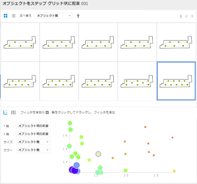 [成果を検討]ダイアログを使用して、レイアウトの代替案を確認し、さまざまな基準で評価します。