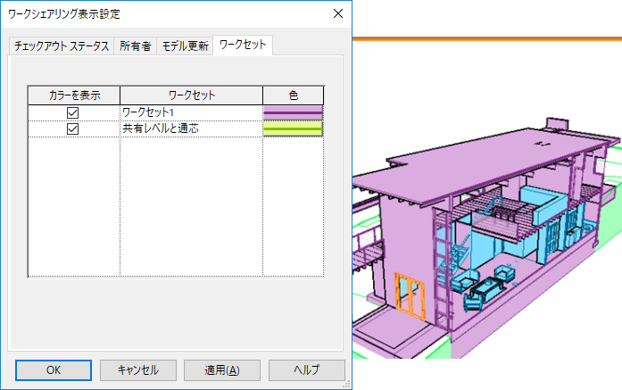 ワークシェアリング表示モードでは、ワークシェアリングされているモデルのさまざまな要素のステータスを確認できます。