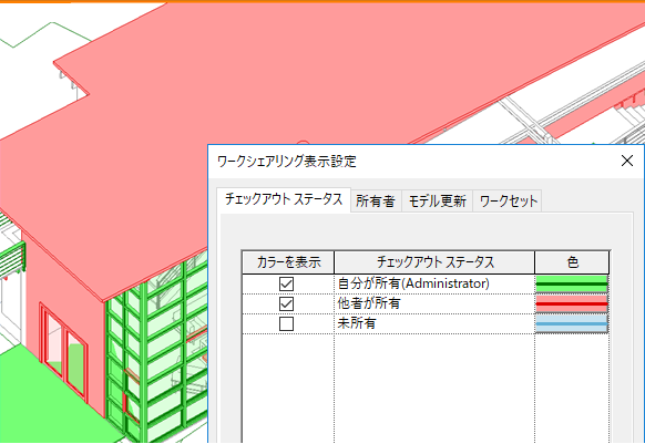 ワークシェアリング表示モードでは、モデル内の要素のステータスを確認できます。このコントロールを使用すると、モデルのモードを切り替えことができ、モデルを完全に理解したり、現在作業しているユーザを確認することができます。この情報は、チームとのコミュニケーションとコラボレーションに役立ちます。複雑なプロジェクトでは、複数のチーム メンバーがこれらの表示モードを使用することで、モデルで行っている作業を理解する時間を短縮できます。編集要求をして、チームメンバーの返信を待つことを避けることができ、代わりに、表示モードを使用して、要求する前に要素のステータスを確認することができます。チームの直接のコミュニケーションに代わる機能はありませんが、ワークシェアリング表示モードは、モデルで行っている作業を理解し、調整するのに役立ちます。