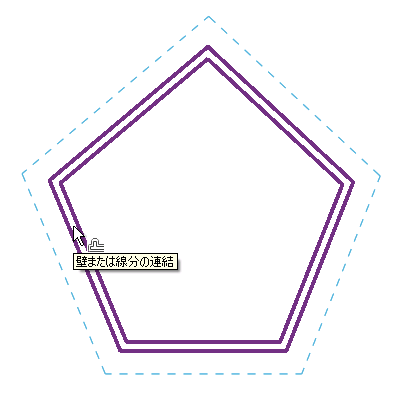 [数値]オプションを使用してオフセット距離を指定した場合、次のようにカーソルが置かれている側でハイライト表示されている要素からの距離にプレビュー破線が表示されます。