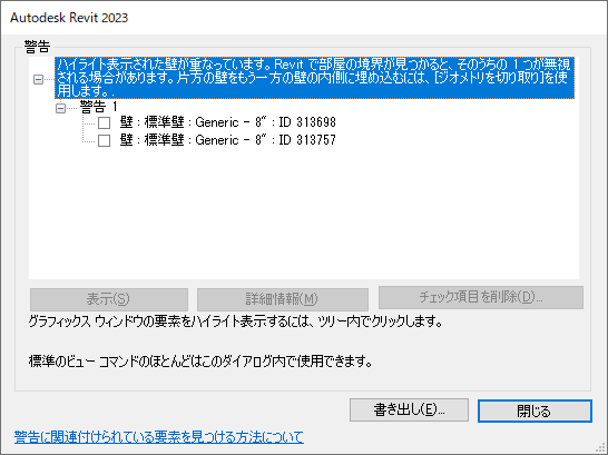 モデルから要素を削除するには、要素名の横にあるチェック ボックスを選択し、[チェック項目を削除]をクリックします。