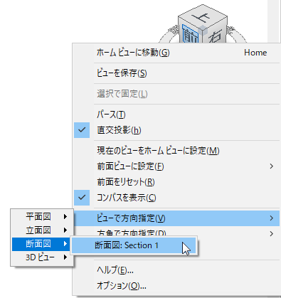 ViewCube を使用して、3D ビューをモデル内の任意の平面図、立面図、断面図、または 3D ビューで方向付けることができます。
