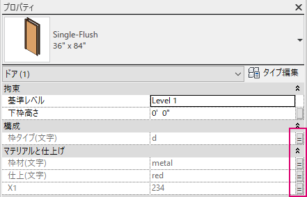 キーが要素に適用されると、キーによって割り当てられたプロパティは、プロパティ パレットで読み取り専用になります。キー値と位置合わせされたパラメータ値には、値の右に「=」が表示されます。キー値と位置合わせできないパラメータ値には、「≠」が表示されます。