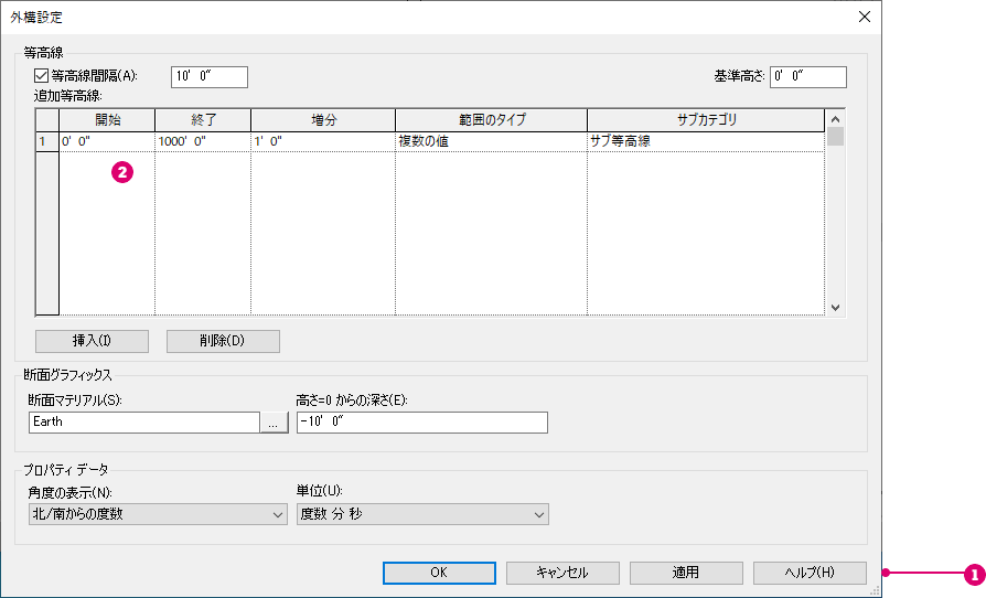 ダイアログを大きくすると、ダイアログをスクロールすることなく、追加の等高線設定を変更できます。
