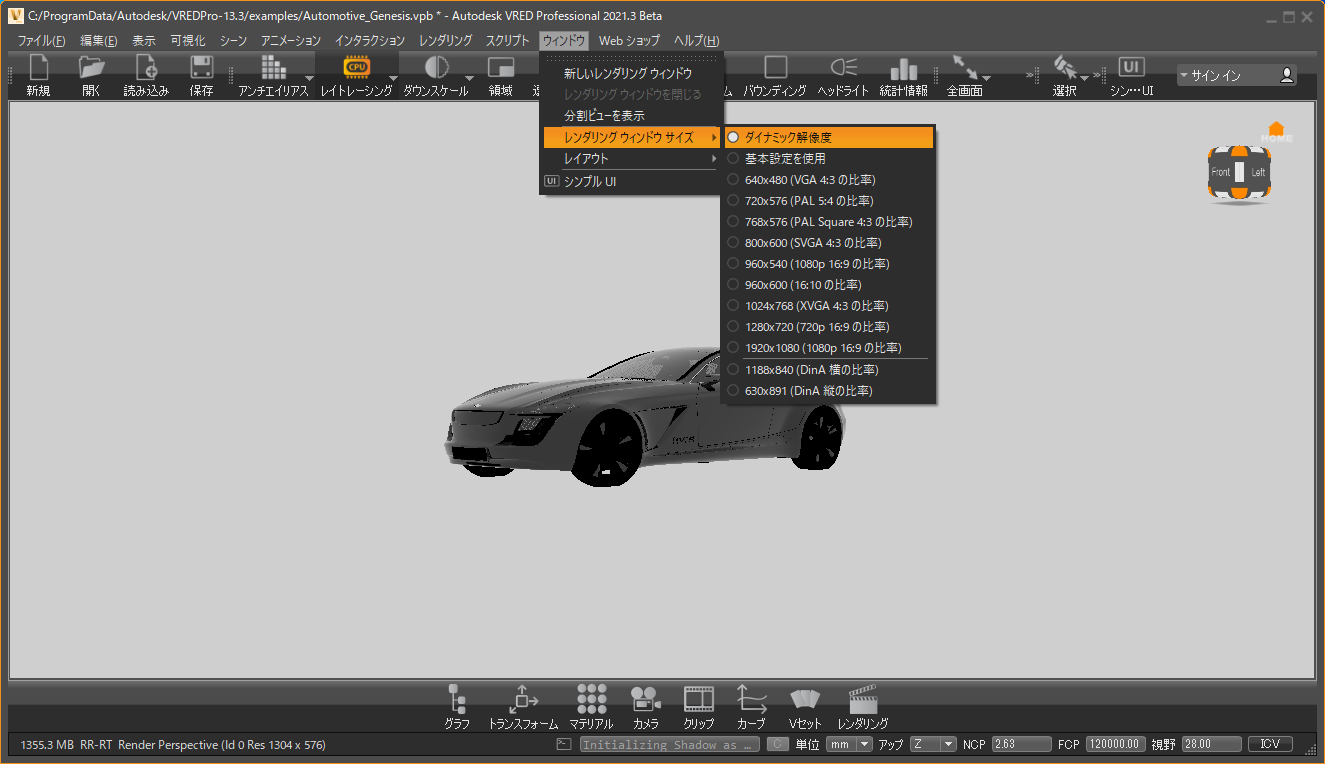VRED でレンダリング ウィンドウのサイズを変更する方法について説明します。
