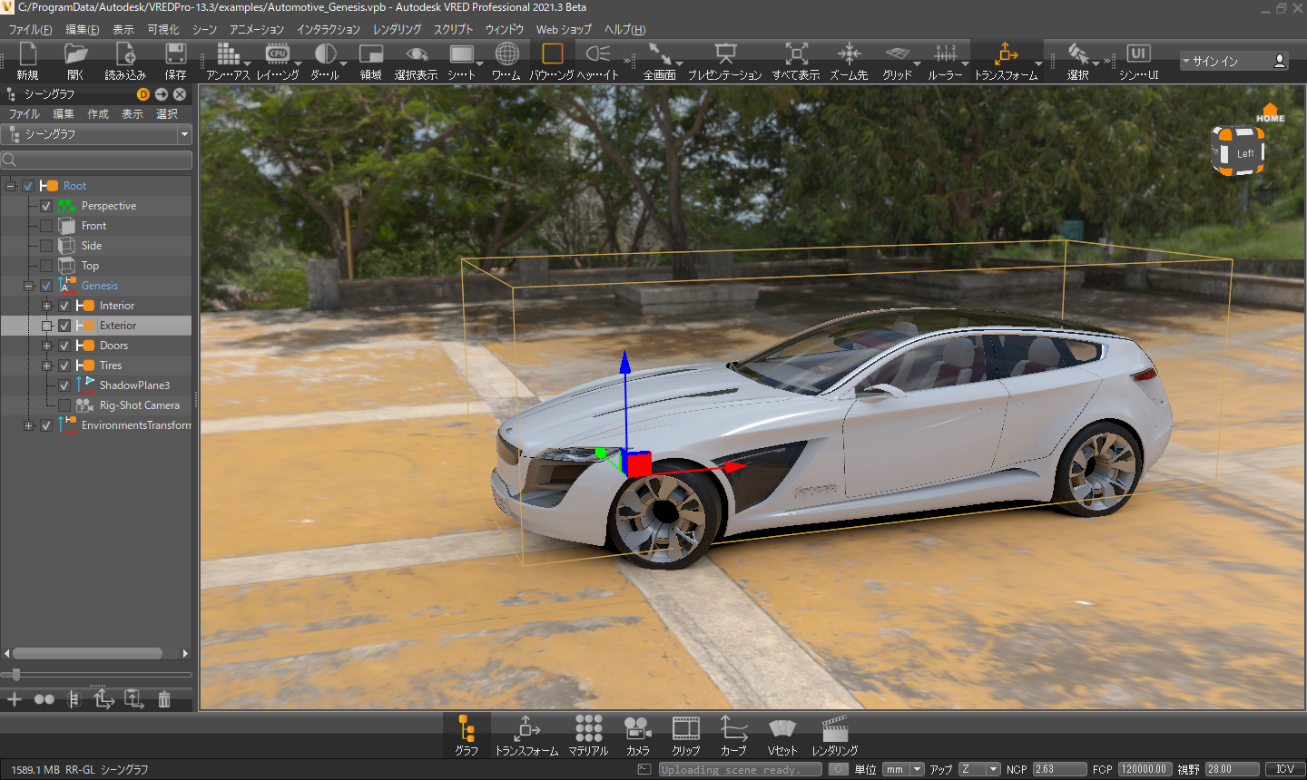 VRED でオブジェクトをトランスフォームする方法について説明します。