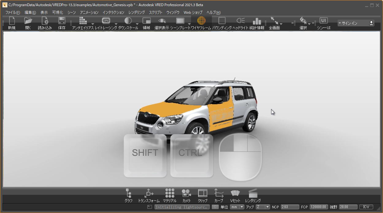 VRED の操作方法と、VRED でのナビゲーションについて説明します。
