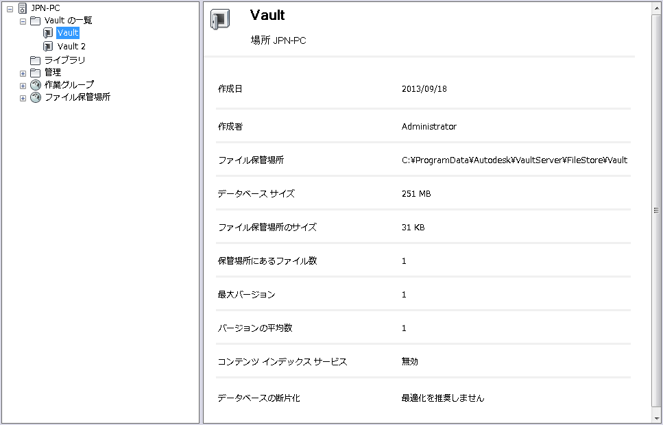 - ADMS Console のナビゲーション ペインで、Vault フォルダから Vault を選択します。