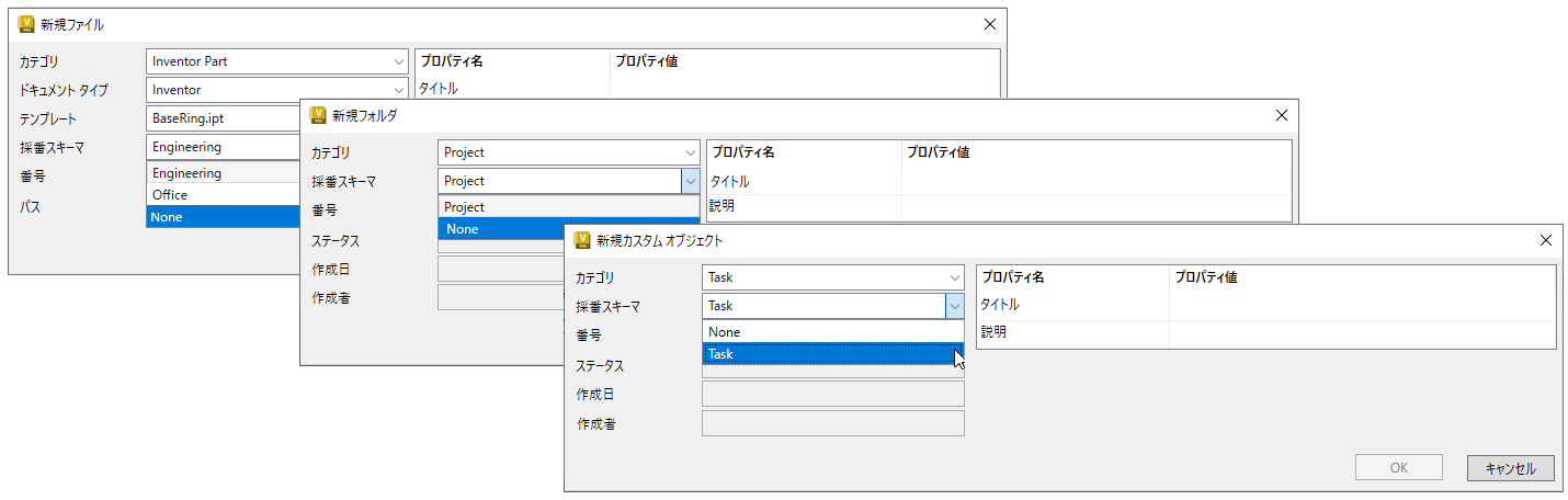CAD アプリケーションの場合、カテゴリ選択フィルタから採番スキーマ「エンジニアリング」に至るまで、すべてのファイルが独立しています。