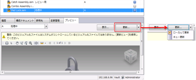 ファイルを選択し、[更新]ボタンの横にある矢印を選択します。