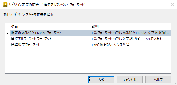 - [リビジョン スキーマ定義を変更]ダイアログ ボックスで、選択したアイテムに割り当てる新しいリビジョン スキーマを選択します。[OK]をクリックします。