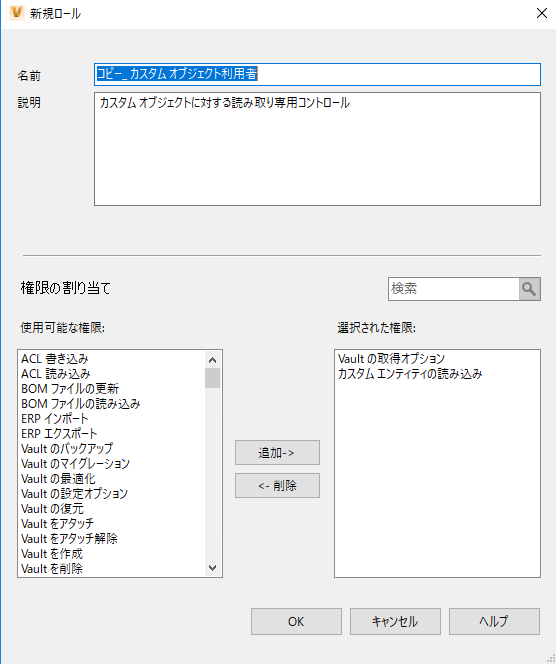 ロールを作成またはコピーするときに、必要に応じて権限を追加または削除することができます。
