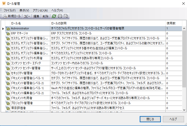 [ロールの権限]ダイアログは[ロール管理]ダイアログになりました。カスタム ロールを作成、編集、コピー、および削除できます。ダイアログにロールの説明が含まれるようになったため、ロールの管理がより簡単になります。