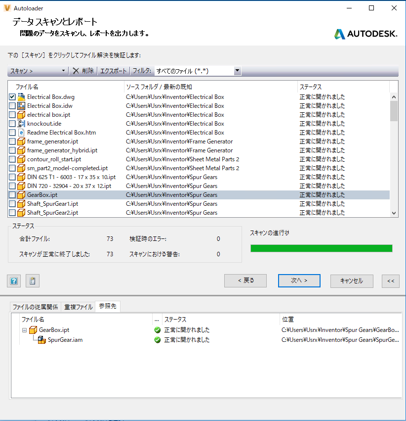 - スキャン完了後に、ダイアログの[ファイルの従属関係]領域で[参照先]タブを使用できるようになりました。このタブでは、選択したファイルの親が表示されます。