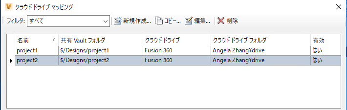 注: Vault 2019 の Project Sync では、Buzzsaw サポート(以前のリリースで提供)がクラウド ドライブ サポートに置き換わります。
