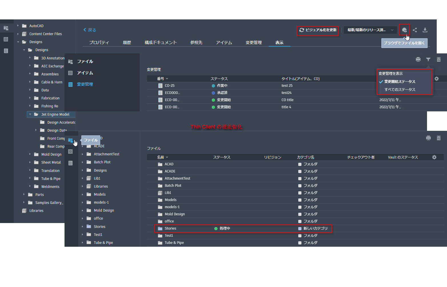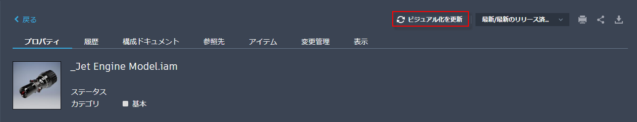 現在選択しているファイル バージョンのビジュアル化ファイルを簡単に更新できるように、ActionBar に[ビジュアル化を更新]コマンドを追加しました。