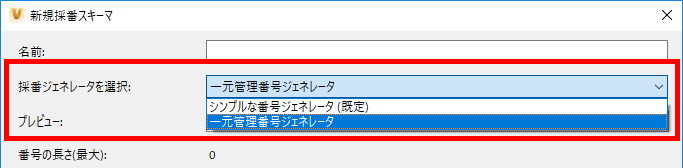 Vault 2020 では、ユーザ定義番号ジェネレータという、新しい採番スキーマ プロバイダを選択する方法が導入されました。これにより、会社の規則または他の業務システムから派生した規則に基づいて、カスタム プロバイダを作成できます。また、複製環境の場合、[一元管理番号ジェネレータ]を選択することもできます。