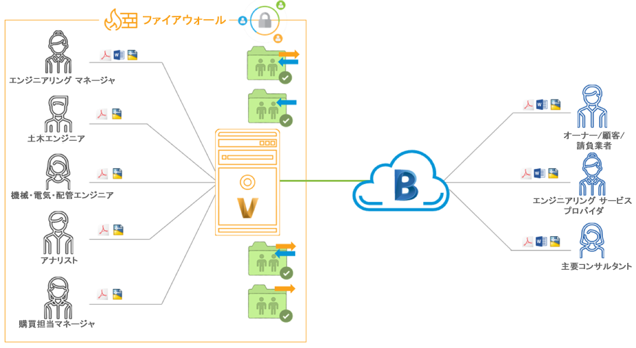 全世界で、ファイアウォールを超えるエンタープライズ ソリューションとして Vault を利用するお客様は、複数の改善によって利益を得ることができます。Vault Professional 2020 内の Project Sync は、BIM 360 と双方向で接続することで拡張されたプロジェクト チームとの連携を効率化するために、インフラストラクチャと土木工学市場の Vault ユーザをサポートするために拡張されました。