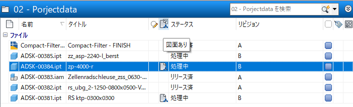 [図面あり]という新しいプロパティは、モデルに 1 つまたは複数の図面が関連付けられているかどうかを特定するのに役立ちます。このプロパティを利用すれば、[図面あり]プロパティを検索することで、プロジェクト内で図面が欠落しているモデルすべてを一覧表示できます。また、このプロパティのチェックインのライフサイクル変更を利用して、関連付けられた図面が存在する場合にのみモデルがリリースされるようにし、最終的には図面が関連付けられていないコンポーネントを Inventor ブラウザ内で特定およびフィルタできるようになります。