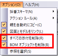 BOM オブジェクト、およびモデルとデザイン ドキュメントのすべての添付を削除することができます。