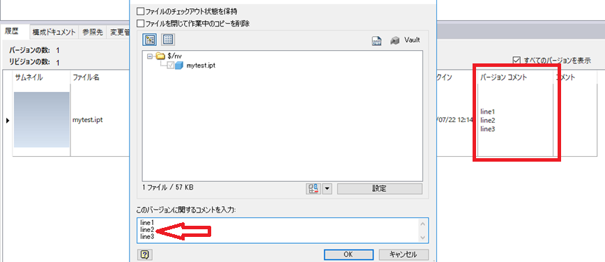 これまでは、[チェックイン]や[状態を変更]などのダイアログ ボックスに複数行のコメントを追加すると、Vault Client ではコメントが 1 行で表示されていました。Vault Client では、「コメント」が 1 つの行として表示されていました。今回のアップデートにより、複数行のコメントが Vault Client にも反映されます。