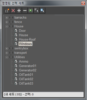 - 현재 선택된 오브젝트를 선택된 명명된 선택 세트에 추가합니다.