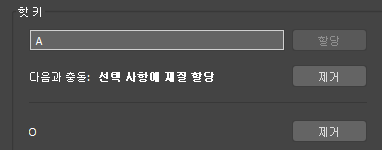 주: 키보드 바로 가기가 이미 같은 그룹의 다른 작업에 할당되어 있으면 충돌하는 작업 이름이 키 누르기 필드 아래에 나타납니다.