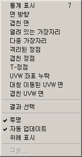 모든 모드는 형상인지 UVW인지에 관계없이 하위 오브젝트인 정점, 가장자리 및 면과 관련됩니다. 그러나 Checker에서 해당 결과를 표시하도록 하기 위해 하위 오브젝트 수준에 있을 필요는 없습니다. Checker 결과는 오브젝트 수준 및 모든 하위 오브젝트 수준에 나타납니다.