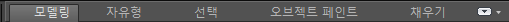 리본 탭 그래파이트 모델링 도구, 자유형, 선택 및 오브젝트 페인트의 가시성을 토글합니다.