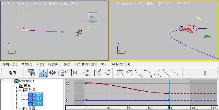 • 뷰포트에서 오브젝트를 선택하여 트랙 바에 오브젝트의 키를 표시합니다.