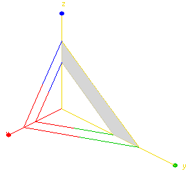 축 삼각대는 각각 X, Y, Z 레이블이 지정된 세 개의 선으로 구성되고 다음 세 가지 사항을 표시합니다.