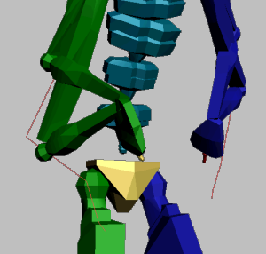 또한 Biped의 대상을 다시 지정하도록 선택하여 다른 Biped를 참조로 사용할 수 있습니다. 몸체 비율이 다른 두 개의 애니메이션된 Biped 사이에 손 및 발 배치를 정확하게 일치시켜야 하는 경우에 유용합니다.