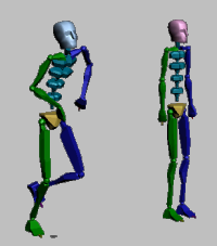 왼쪽의 애니메이션된 Biped 및 오른쪽의 불균형 Biped
