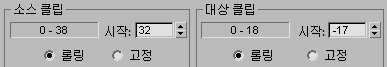롤링과 고정은 전환 중에 클립이 움직이는지(모션 상태) 고정되었는지(단일 프레임) 지정합니다. 각도 필드를 사용하여 대상 클립의 방향을 변경합니다.