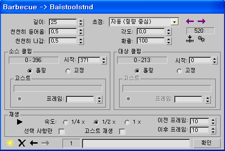 두 클립의 속도를 일치시켜 전환이 계산됩니다. 보다 긴 전환을 사용하여 갑작스런 속도 변화를 유연하게 표현할 수 있습니다.