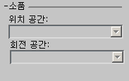 좌표 공간 드롭다운 메뉴는 소품이 현재 프레임에서의 위치 및 회전에 대해 표준, 몸체, 오른쪽 손 또는 왼쪽 손 좌표 공간을 참조하도록 설정합니다.