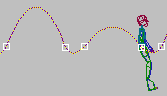 - 키프레임 도구 롤아웃에서 수평 구부리기 스피너를 사용하여 선택된 수평 키에 대한 수평 질량 중심 궤적을 구부릴 수 있습니다.