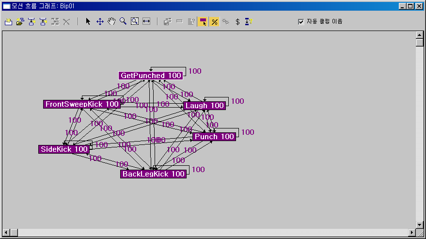 공유 모션 흐름을 사용하면 여러 Biped 또는 군중에 하나의 모션 흐름을 할당할 수 있습니다. 개별 Biped에 대해 클립의 모션 흐름 네트워크를 구축하는 대신 모든 클립과 전환을 사용하여 모션 흐름을 만들어 다중 Biped를 애니메이션할 수 있습니다. 임의로 모션을 만들면 각 Biped의 고유한 모션 흐름을 사용합니다. Biped의 모션 흐름이 공유 모션 흐름인 경우 해당 공유 모션 흐름이 임의의 모션을 계산하는 데 사용됩니다.
