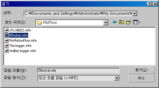 5. 모션 흐름 편집기 파일을 저장한 폴더에서 MFE 파일을 선택합니다.
