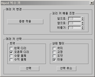 다음 컨트롤을 사용하여 키가 지정된 프레임의 발 상태에 따라 키를 선택할 수 있습니다. 이 옵션은 특정 트랙에서 특정 키 유형 모두에 증분을 적용하려는 경우 매우 유용합니다.