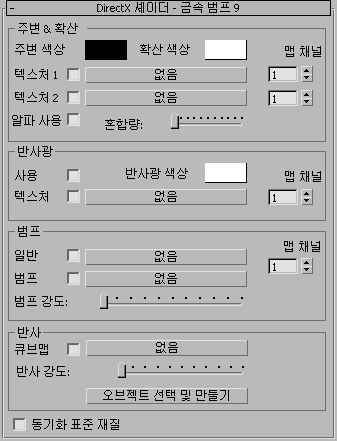 DirectX 셰이더 - 금속 범프 9 롤아웃에서 모든 텍스처 맵에는 일반적인 컨트롤이 동일하게 있습니다.
