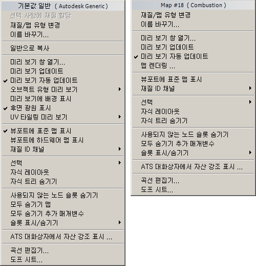 Autodesk 재질 노드의 마우스 오른쪽 버튼 클릭 메뉴