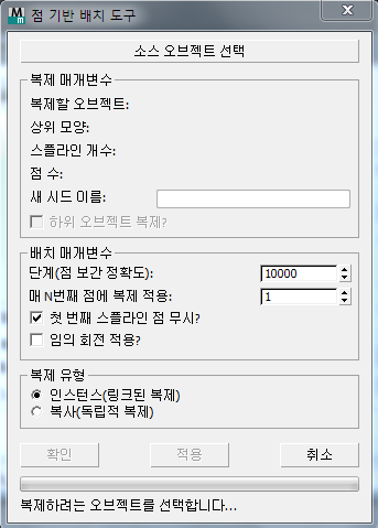 복제된 오브젝트를 생성할 때 사용할 점 간격을 설정합니다.