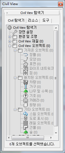 이 패널에는 Civil View 내부 및 외부에서 만든 오브젝트가 모두 표시됩니다.