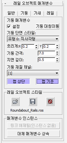 - 설정하면 레일에서 기둥 형상을 사용합니다. 끄면 레일에 기둥이 없습니다.
