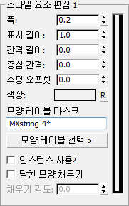 채운 영역 도로 표시의 경우 상위 모양의 닫힌 경계를 가로질러 생성된 도로 표시 급커브 또는 스트라이프의 폭을 설정합니다(닫힌 모양 채우기가 설정된 경우에만 유효).