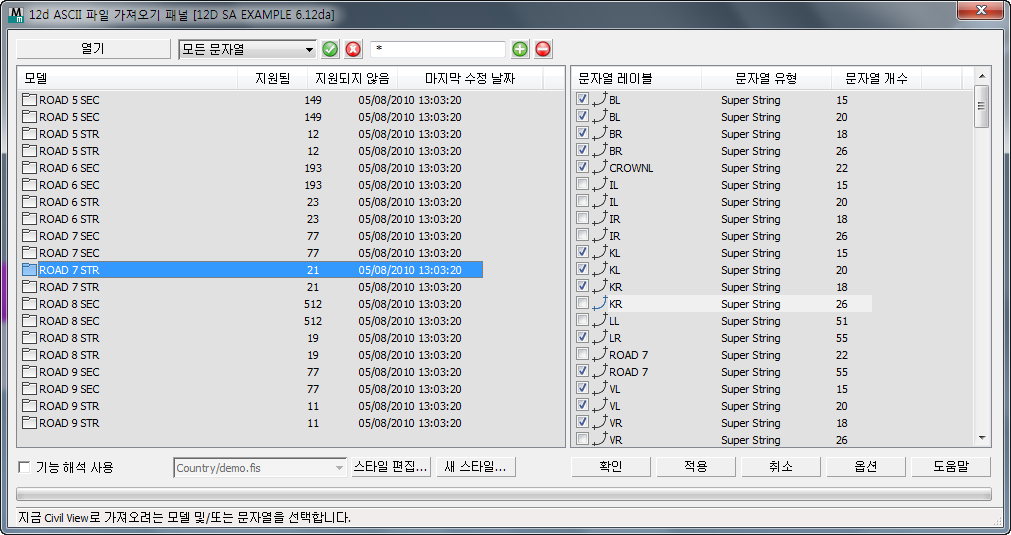 7. Civil View는 각 장면으로 가져온 12D Model 문자열을 기억하여 동일한 문자열을 두 번 이상 가져올 수 없도록 합니다.
