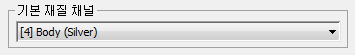 오브젝트에서 다중/하위 오브젝트 재질의 여러 가지 다른 채널을 사용하는 경우 한 채널은 주 채널, 즉 기본 채널로 간주됩니다. 이 드롭다운 리스트에는 선택한 오브젝트에 대한 기본 재질 채널이 표시되며 일부 범주의 경우 채널을 변경할 수 있습니다. 예를 들어 차량 본체 색상 및 지표면이 포함됩니다. 여러 가지 다른 오브젝트 유형에 대한 기본 재질 채널은 해당 매개변수 롤아웃에서 동적으로 제어합니다.