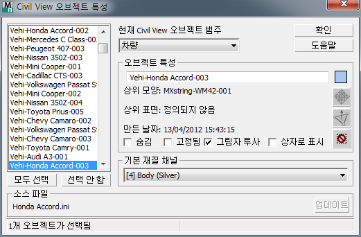 Civil View에서 만든 오브젝트의 특성을 설정할 수 있습니다.