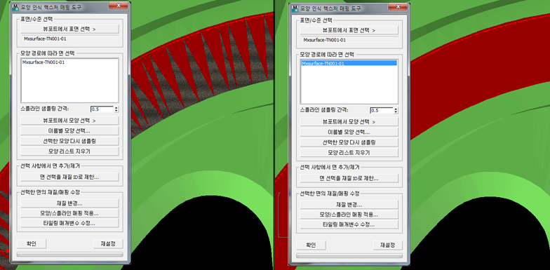 선택한 면 그룹에서 재질/매핑 수정